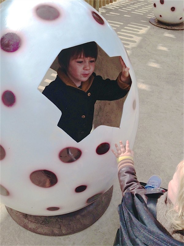 Hiding in a dino egg to jump up at Toby. It’s so lovely to see the boys now playing together more.
