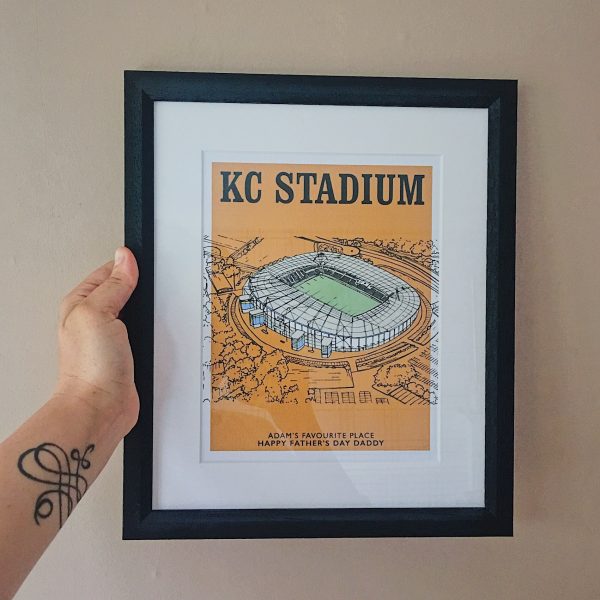 The first was chosen by Reuben who knows how much his Daddy loves Hull City, and knew that the stadium they play in – where Daddy goes to worship – is called the KC Stadium. We ordered this lovely print by Letterfest and it was designed for us, personalised and even made with the Hull City colours. They offer any stadium, you just need to tell them which – what names, colours and details and they will do the rest. Reuben also spent time talking about how Daddy had been born in Hull and after a recent school trip he even knew it was the current city of culture!