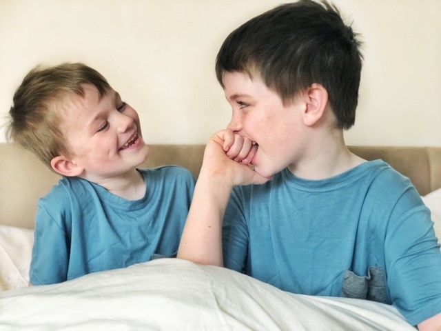 We were stood in the kitchen playing football (something that they aren’t supposed to do but that they do. All the time.) and Toby slipped. I jumped forwards as normally this would illicit tears from him. He’s very like me when I was younger, tears come thick and fast in moments of embarrassment, if he is laughed at it can be so upsetting for him. He’d slipped over and bumped himself, I could see the frustration across his little face as Reuben cackled with laughter, so in I stepped. The one he comes to when he’s angry, the one he can rely on when he is frustrated beyond measure and the tears are threatening.