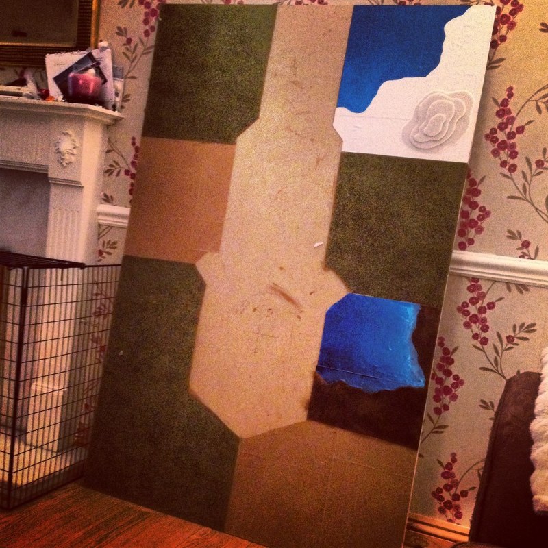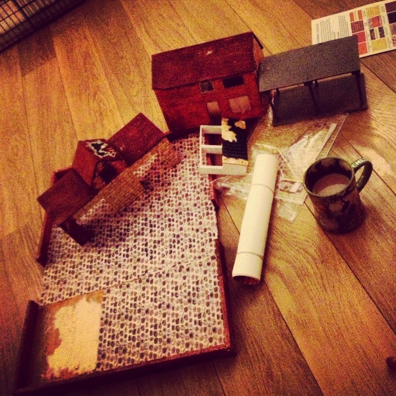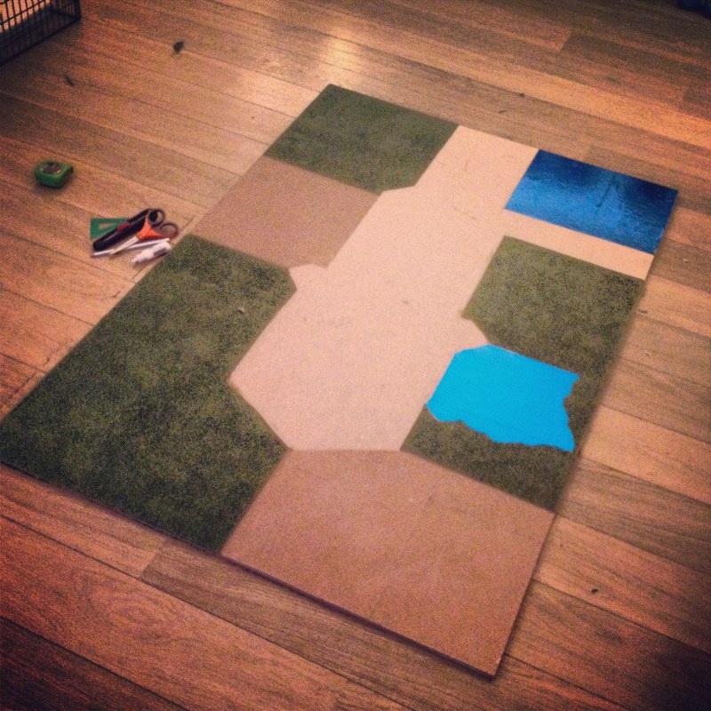 Finally the dollhouse paving paper went onto the centre of the board, creating a ‘path’.