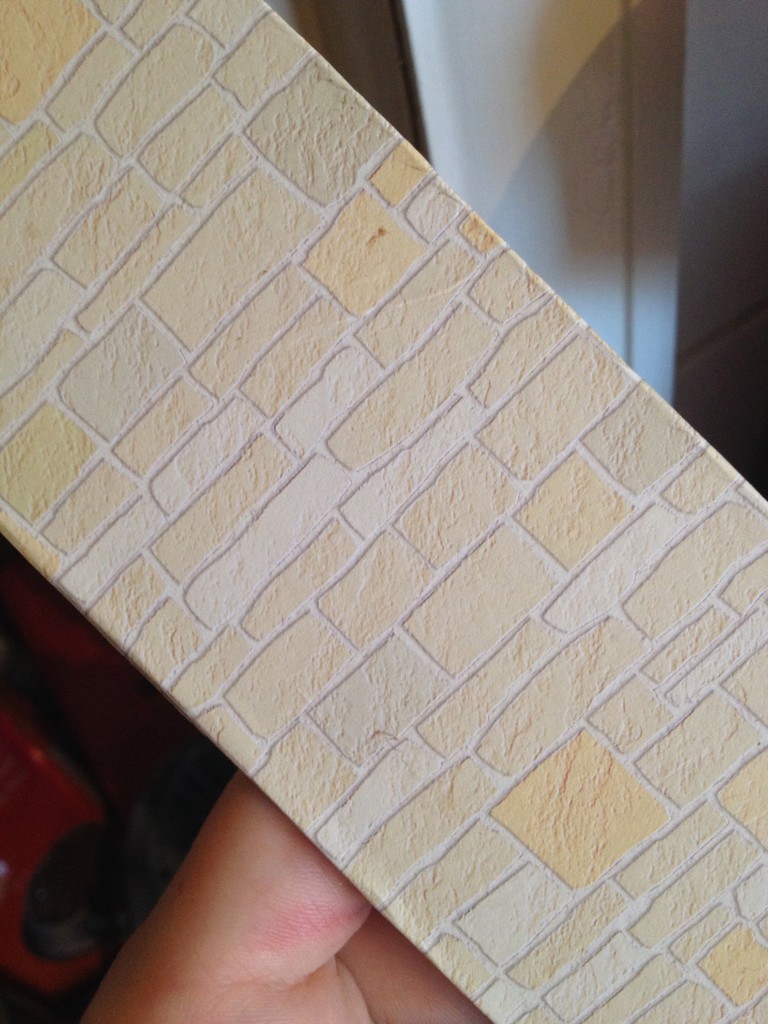 Brick style dollhouse paper, which you can find online or in a crafting store, for the wooden panels that made up the bricks.