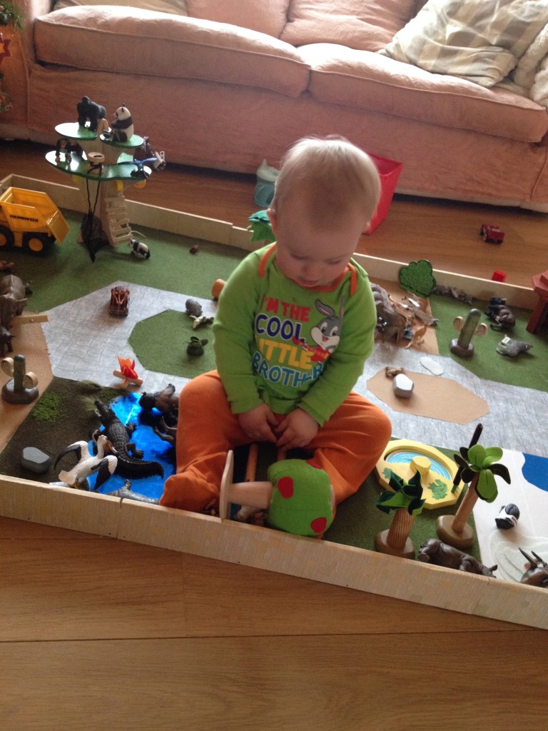 Reuben joined in the fun too! Just to point out all of the animals are Schleich, I find them the best for Toby who wants to chew everything. They never damage! The trees and accessories are Le Toy Van and the big fabric trees are Animalz. All bought from a small local shop called Bubbles toys in york.